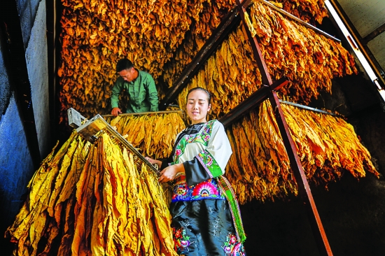 7月20日,花垣县花垣镇接溪村烟农石洪波将烤好的烟叶下坑。今年花垣县种植烟叶面积3.76万亩,预计收烟达8万担,目前第一烤烤烟已出炉,全县烟农正抢抓时间烤烟。 石林荣 摄