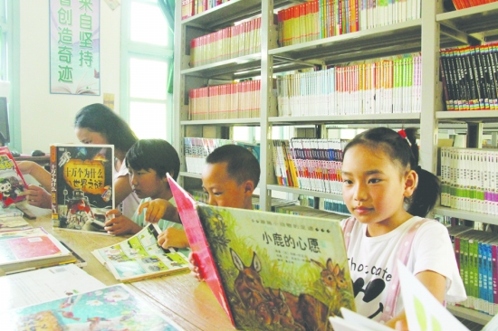 7月21日,保靖县清水坪镇夕东村的留守娃在农家书屋快乐地读书。为了丰富留守娃的假期生活,减轻家庭负担,让孩子们过一个安全而有意义的暑假。暑假以来,该县各乡镇的农家书屋对周边学生按时开放,农家书屋成了孩子们的暑期乐园。 俞采华 陈亚平 摄