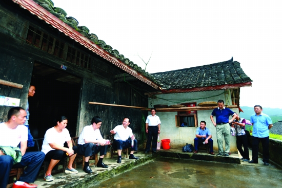 州委书记叶红专(前排左四)等州领导来到花垣县石栏镇,调研精准扶贫脱贫工作。 本报记者 彭 伟 摄