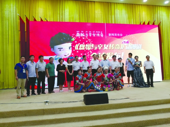 8月11日,中国第一部国家非遗大型三维动漫剧《盘瓠与辛女传奇》面世新闻发布会在长沙隆重举行。该剧由湖南广电、泸溪民宗文旅局等单位联合出品,系我国首部记录国家非物质文化遗产的动漫剧,总计26集,由芒果东方文化传媒等单位承制。《盘瓠与辛女传奇》将在央视、金鹰卡通卫视与全国省级以上电视台推介播出。 本报特约记者 向晓玲 通讯员 向晓菊 摄