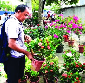 8月11日,市民在乾州农贸市场选购花卉。秋季伊始,天气逐渐凉爽,市民又纷纷购置花卉栽培,绿化家园,美化环境。 杨 健 摄