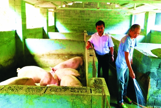 泸溪县合水镇万亩生态油茶示范基地,当地油茶专业合作社以基地为依托种植蔬菜等青饲料养猪,利用猪粪肥地培育油茶和种菜,发展油茶生猪种养互动生态循环经济,不仅节约了生产成本,也拓展了产业增收途径。今年,国富油茶专业合作社在基地油茶林附近新建了养猪场,养殖生猪240多头,预计第一批生猪创收20多万元。图为8月15日,养猪场工作人员正在清洗猪圈。 唐正