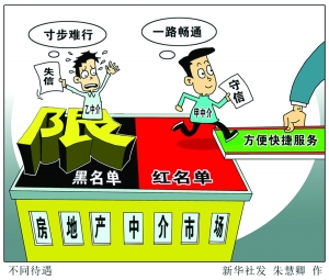 住房城乡建设部、发展改革委、人民银行、银监会等七部门《关于加强房地产中介管理促进行业健康发展的意见》近日出台。落实新规,以诚信典型“红名单”和严重失信主体“黑名单”制度,清除害群之马,才能使房地产中介更好地服务于房地产市场建设。