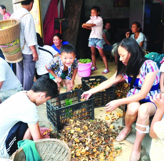 8月23日,永顺县羊峰山下的松柏镇村民正在销售枞菌。每逢枞菌生长季节,该镇部分农户采枞菌的收入就超过万元,借助便利的交通条件,涌现了一批专门的枞菌经营大户,枞菌早晨从山上采下,晚上就能上到市民的餐桌。枞菌成为了当地鲜亮的绿色生态名片。 罗远程 摄