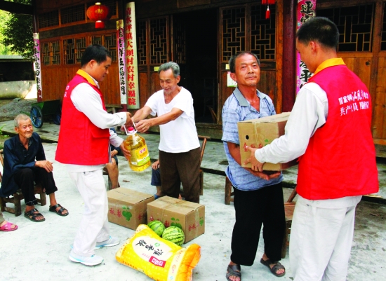 8月22日,国网保靖供电公司的党员服务队在清水坪镇大坝敬老院慰问孤寡老人。当日,该供电公司的电力志愿者来到大坝敬老院,为孤寡老人带来大米、金秋梨、食用油等生活用品,还为他们义务检修电器线路,并和他们聊天,让他们感受到来自社会大家庭的温暖。 俞采华 曹 彪 摄