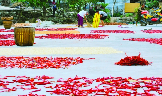 日前,凤凰县廖家桥镇鸭宝洞村村民包氏婆媳在收拾晾晒的玉米。秋收时节,凤凰县各乡镇村民趁着晴好天气,将采摘来的玉米、红辣椒等晾晒在路边、房前屋后院坝,做到颗粒归仓,构成一幅美丽的“晒秋图”。 滕建康 摄