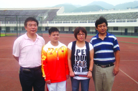 杨霞、龙清泉与他们的教练李小平、甘智悦。
