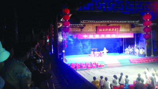 中秋佳节,丰富多彩的民族文化活动精彩上演。图为中秋当晚,吉首市乾州古城内正在举行中秋赏月戏曲晚会,成为了广大游客和市民们一道丰盛的中秋晚宴。 本报记者 石秋云 摄