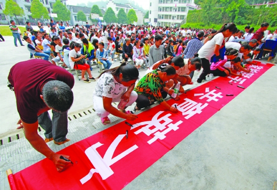 9月5日,花垣县团结中学学生家长在签名。金秋开学,该校开展“家校联手·共育英才”主题活动,营造了良好的育人氛围。 龙恩泽 摄