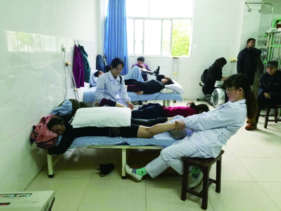 每张床上两名患者,康复治疗师每天挥汗如雨,精疲力尽
