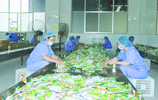 ▲兴盛果蔬公司榨菜系列产品包装车间。