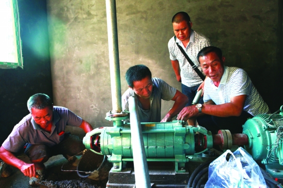9月20日,保靖县水田河镇卡当村人饮工程建设工地上的施工人员,正抓紧安装抽水泵。卡当村苗语叫做“卡东绒”,是“干死龙”的意思,村民饮水十分困难。为解决饮水难题,团结报社驻卡当村扶贫工作组把人饮工程建设,当作精准扶贫的一项重中之重的工作来抓。计划从距村子1公里外半山崖悬的山洞中抽取洞水,分两期修建人饮工程。在相关单位的大力支持下,目前抽水高压