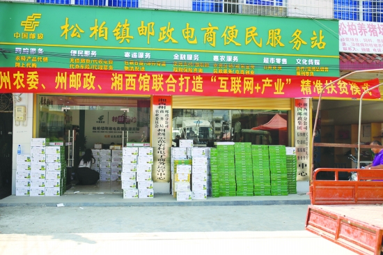松柏镇州级示范农村电子商务运营中心里里外外码满了等待运输的猕猴桃