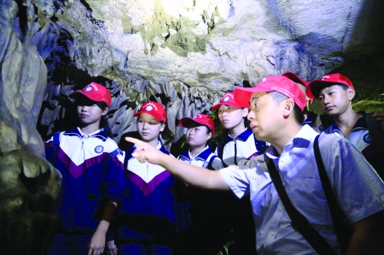 10月7日,龙山思源实验学校9名中小学生化身为“科考员”,在学校物理、化学、生物、地理教师的带领下,来到该县风光旖旎的乌龙山大峡谷进行科考活动,咨询探路、判断山势、分析地层、清理岩石、比对化石、综合评述。近年来,该校注重义务教育阶段学生们的乡土知识教学,潜移默化中促进学生积极实践,做到了解家乡、走进家乡、热爱家乡。图为学生们正在进行科考活动
