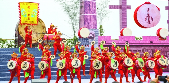 河北正定常山战鼓雄壮威武,气势磅礴,一展赵子龙的英雄气概。