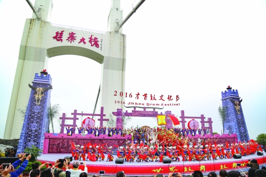 矮寨大桥边的 鼓乐盛典