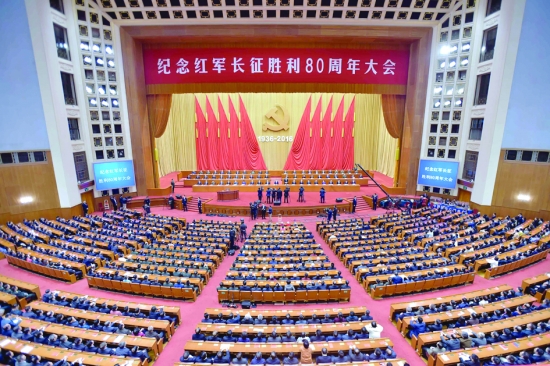 10月21日,纪念红军长征胜利80周年大会在北京人民大会堂隆重举行。 新华社记者 李 涛 摄