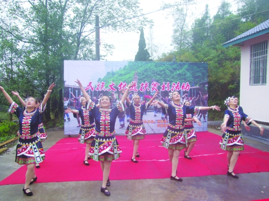 10月30日,州疾控中心演出的健骨操引得观看村民的热烈掌声。当天,州编办、州台办、华融湘江银行湘西分行、州疾控中心四家单位组织干部职工与扶贫村群众在麻栗场镇登高村举办民族文化进扶贫村演出。 花垣县麻栗场镇新桥村、登高村作为四家单位的扶贫联系村,开展扶贫工作以来,四家单位先后投入资金522.7万元用于完善基层基础设施建设,培育和发展支柱产业。截至