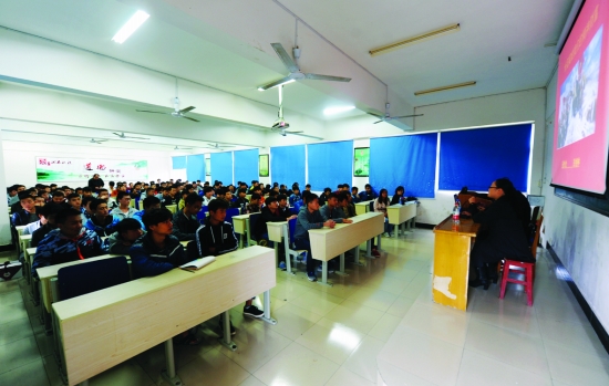 10月25日,湘西民族职业技术学院举行纪念红军长征胜利80周年专题讲座,授课老师用丰富的史实讲述了长征的来龙去脉,展示了我党我军艰苦奋斗的革命精神,为到场听课的学生们献上了宝贵的精神食粮。图为讲座现场。 覃朗宇 摄