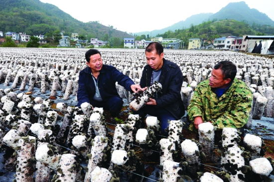 11月2日,吉首市人大代表、双塘工作办大兴村青年农民陈平(中)在察看黑木耳长势。黑木耳是一种营养丰富的食用菌,是我国传统的保健食品和出口商品。历来吉首市以及湘西地区市场的黑木耳都是从外地采购进来。 2015年在政府和移民部门、驻村工作组的大力支持下,陈平引进了食用菌黑木耳栽培技术,带领村民和精准扶贫户40户种植黑木耳60亩,开发建设栽培黑木耳产业基地3
