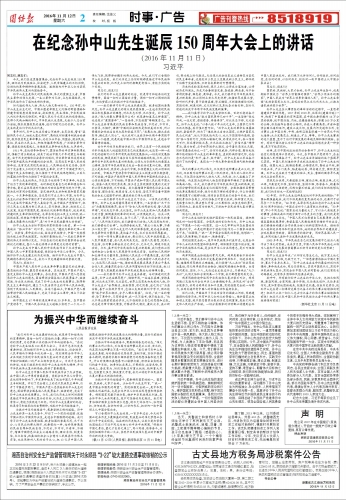 在纪念孙中山先生诞辰150周年大会上的讲话