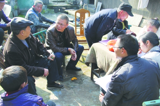 市安委办主任、市安监局局长孔庆国和村干部、村民了解村级安全生产工作。