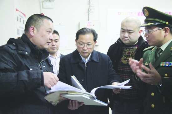 州委常委、吉首市委书记刘珍瑜(中)检查安全生产,查阅消防台账。