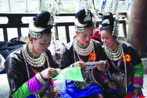 11月29日,在贵州省从江县鼓楼广场,绣娘在进行刺绣比赛。当日,在贵州省从江县第十三届原生态侗族大歌节上举办“百强巧手”刺绣大赛,来自从江县各村寨的100名少数民族绣娘齐聚鼓楼,飞针引线竞技手艺,向观众和游客展现从江少数民族的文化魅力。 新华社发(刘朝富 摄)