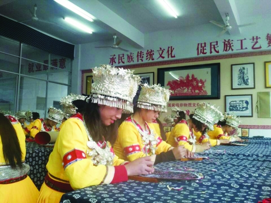 11月23日,泸溪县职业中学学生正在校园内练习踏虎凿花、苗族数纱。近年来,泸溪县大力实施民族文化进校园,把“非遗”传承项目融入到全县中小学校校本课程中,开设专业课程,聘请艺人授课,今年开展民族文化进校园活动1.3万人次,弘扬民族文化,使非物质文化遗产传承后继有人。 特约记者 向晓玲 通讯员 袁绍仁 摄