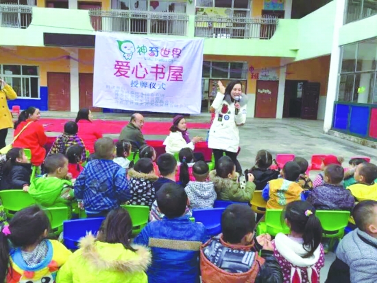 11月22日,由吉首神奇世界绘本馆发起捐建的“神奇世界爱心书屋”启动仪式在吉首市双塘镇中心幼儿园举行,联合神奇世界总部和北京启发世纪图书有限公司在湘西为农村留守儿童捐建六个爱心书屋。吉首市双塘镇中心幼儿园是首批捐建的幼儿园,为该园募集新旧图书共4000册余,价值2万余元。 段 超 摄