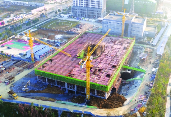 12月7日,正在紧张建设中的湘西经开区金融投资中心。该项目为州庆重点项目,计划投资4.8亿元,占地25.2亩,总建筑面积11.8万平方米,由两栋27层的公寓式酒店、甲级写字楼及两栋11层银行综合大楼组成。 胡大湘 摄
