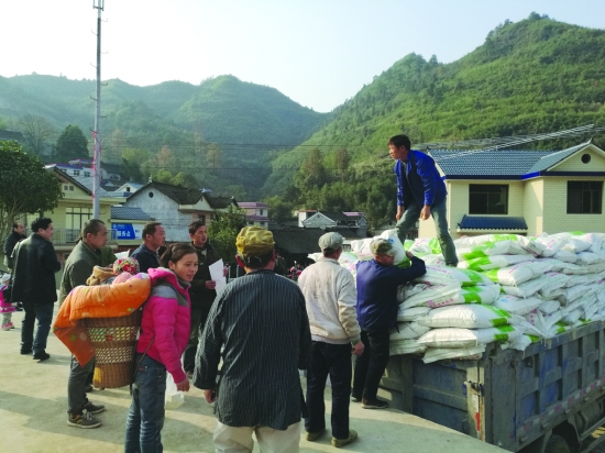 驻勤丰村工作组为村民发放肥料。