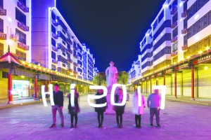 2016年12月29日晚,辞旧迎新,元旦将至,古丈县茶叶街,青年们用光绘摄影的方法画出“Hi,2017”字样守望新年的到来,同时寄托自己对2017年新年的期盼和祝福。 张术杰 摄