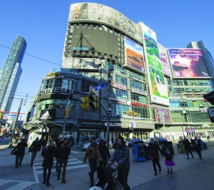 1月1日,在加拿大多伦多市中心的邓达斯广场,行人从“美丽中国———2017丝绸之路旅游年”主题宣传广告前经过。从2016年12月26日起,由中国国家旅游局推出、以“美丽中国———2017丝绸之路旅游年”为主题的大型旅游宣传广告在加拿大多伦多市中心邓达斯广场亮相,向人们展示中国美丽而丰富的旅游资源。整个活动将持续5周。 新华社发(邹 峥 摄)