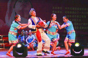 2016年12月31日晚,花垣县老年大学文艺队在该县边城图书馆表演节目。当晚,该县关工委、老干局举办老少牵手辞旧迎新文艺晚会,欢歌起舞迎新年。 龙艾青 摄