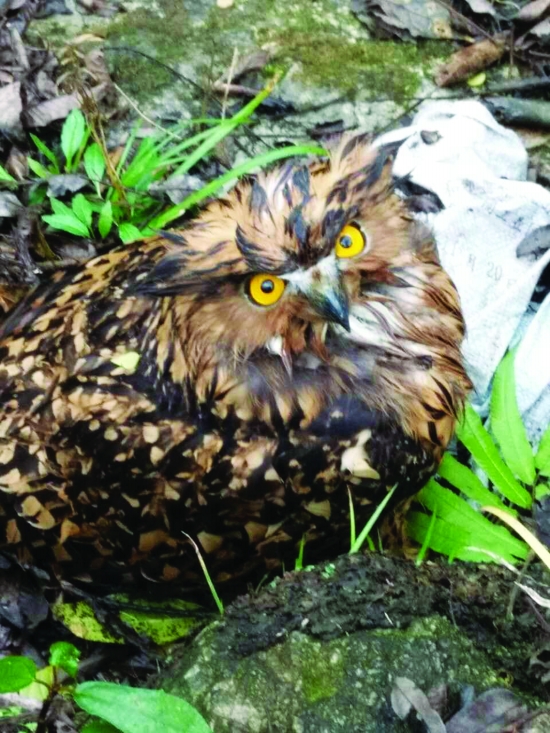 图为受伤的黄脚渔鸮。