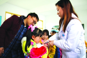 日前,保靖县清水坪镇的防疫人员在黄连小学给留守儿童进行腮腺炎疫苗接种。近期,该县卫生部门组织医务人员深入各个乡镇,积极开展疫苗注射进社区、进学校、进农村活动,宣传卫生常识,有效预防和控制腮腺炎发生和流行,确保留守儿童健康成长。