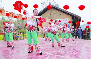 1月18日,花垣县双龙镇十八洞村梨子寨妇女文艺队在表演《苗绣舞》。当天,该村举行精准扶贫文艺汇演,展现精准扶贫行动3年来取得的丰硕成果。