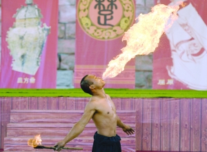 演员表演喷火绝技。