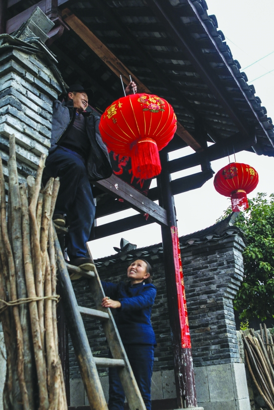 喜庆的大红灯笼挂起来。 曾祥辉 宋国胜 摄