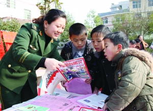 近日,保靖消防大队的党员服务队员在该县清水坪镇为留守娃讲解消防安全知识。连日来,该消防大队组织党员服务队深入乡镇,为留守儿童讲解正确燃放鞭炮和安全用电、用火等知识,传授消防设施设备的使用技能,为他们送上一份“安全年礼”。