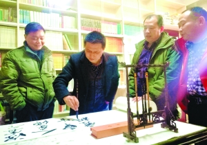 1月30日农历大年初三,泸溪县作家协会部分会员欢聚浦市镇高山坪村傍石书斋,挥毫泼墨交流书法技法,促膝座谈分享文学创作心得,各抒己见共话国学经典,让沉浸在浓浓年味中的山村平添了一抹清新的墨香。图为毛笔书法交流现场。