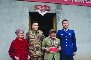 新春期间,泸溪县人武部干部深入洗溪、小章、兴隆场等乡镇慰问抗战老兵代表,送上慰问金。图为该县人武部干部在洗溪镇峒头寨村慰问抗战老兵符隆前。 李焱华 臧观伟 摄