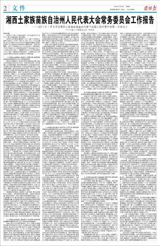 湘西土家族苗族自治州人民代表大会常务委员会工作报告