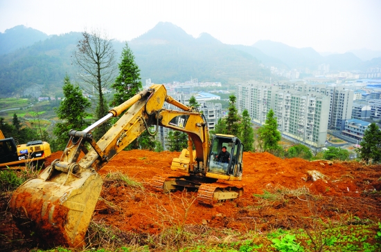 吉首乾州大坡科普公园工人春节加班加点建设环山路。