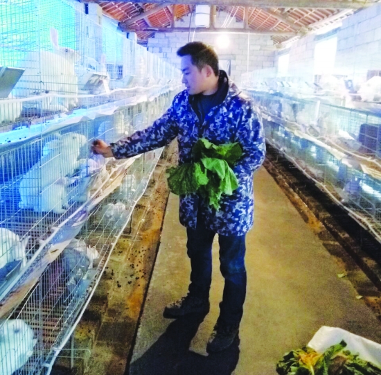2月10日,花垣县龙潭镇角弄村獭兔养殖专业合作社饲养员在给獭兔喂食。去年初,该村吴明胜、石友志等4家农户先后投资近30万元合伙修建了獭兔养殖场。如今,该合作社共有优质獭兔近1000只。他们通过科学管理,精心配种,目前,500余只母兔已经陆续分娩,预计到今年底累计可产獭兔4万余只,收入可达300余万元。 麻胜林 摄
