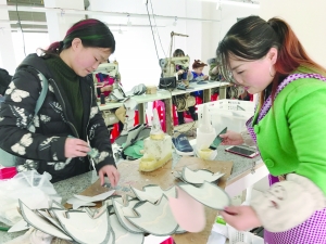 2月16日,永顺县万诚鞋业有限公司工人在加紧工作。该公司成立于2008年,其前身是永顺市场中心皮鞋制作坊,并拥有两项国家专利。目前,该公司引进制鞋机械设备50台,吸纳下岗职工和农民工100人,预计日产鞋1000双,日创产值20000元。