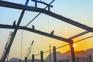2月16日,在夕阳的沐浴下,湘西经开区2.2万m2标准厂房项目工地内,工人正在进行钢结构框架安装施工。今年,该园区计划再动工建设30万m2标准厂房,总面积达到100万m2,进一步完善产业发展平台,全力推进创新创业。目前,该园区标准厂房各项建设工作正酣。