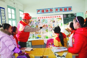 2月20日,国网保靖供电公司的党员服务队在马王小学对留守娃讲解“安全环保”知识。当天是该县中小学开学的第一天,国网保靖供电公司组织党员服务队深入中小学校,走近孩子身边,通过情景体验、实物展示、讲课等方式普及电力安全知识,宣传智能电网绿色环保理念,为学生新学期安全用电保驾护航。 俞采华 曹 彪 摄