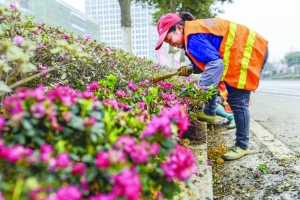 2月19日,湘西经开区武陵山大道花坛里,吉凤建发公司园林工人正在移栽花卉。近日,该区园林工人抢抓良好天气,根据不同路段的植物种类,选择相应的绿化苗木对部分绿化带的露土部位进行补植,进一步提升道路绿化景观效果,为新区美容。